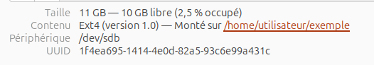 S'identifier commeàUUID=UN_IDENTIFIANT_ICI - Modifier le nom du point de montage en ce qui nous convient le plus, ici ce sera