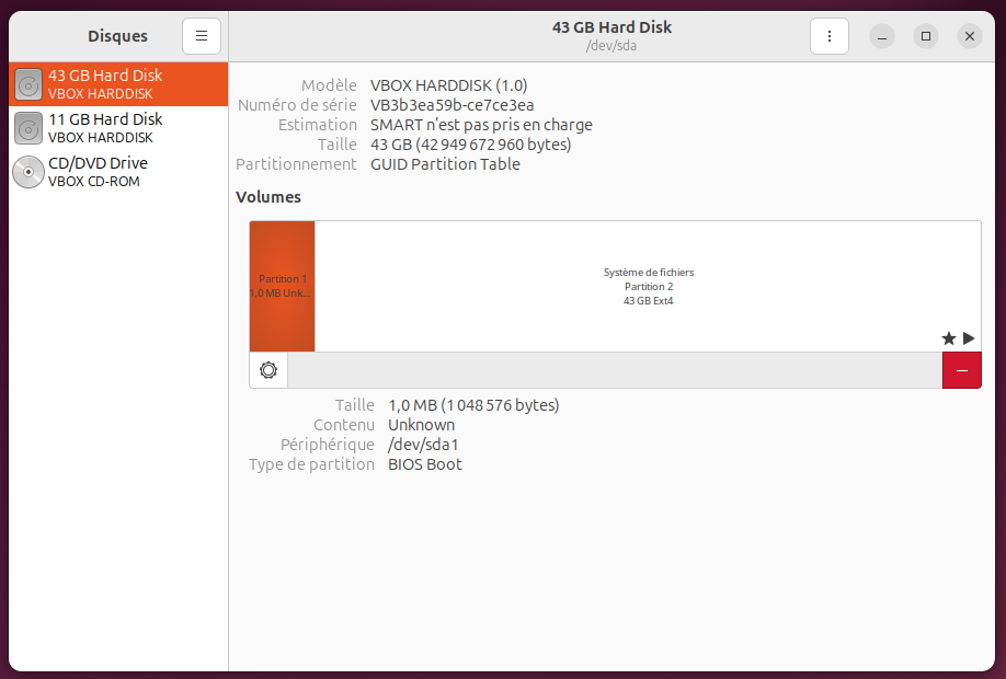 La première des choses à faire est d'ouvrir l'application Disques qui propose une interface comme celle-ci :