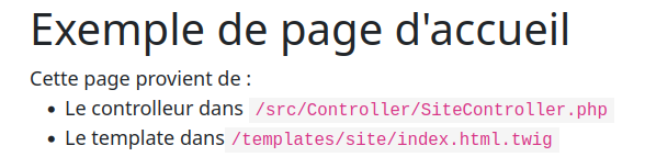 <li>Le template dans<code>/templates/site/index.html.twig</code></li>