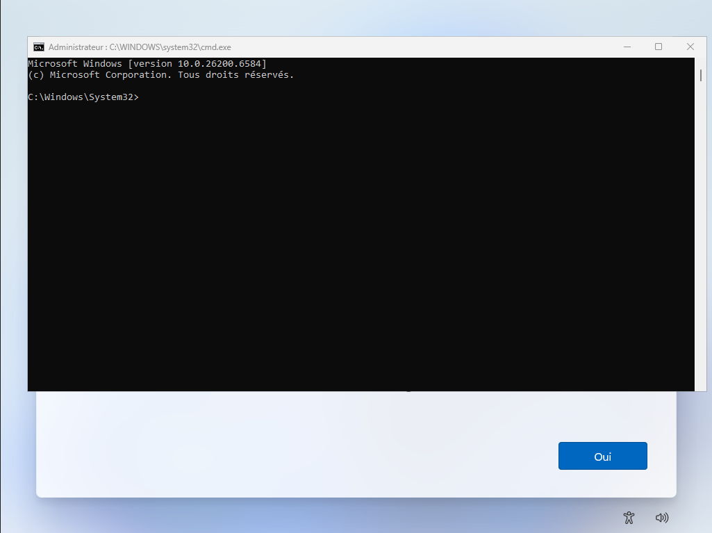 Une fois sur cet écran, l'objectif est d'ouvrir un terminal en utilisant la combinaison de touches : Shift + F10 :