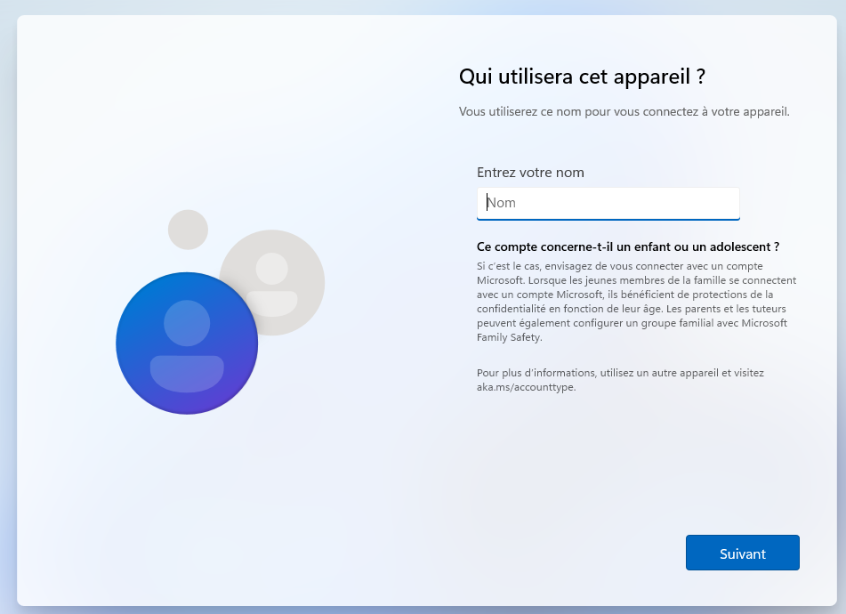 Une fois que l'on a installé Windows 11, nous sommes accueilli sur cet écran :